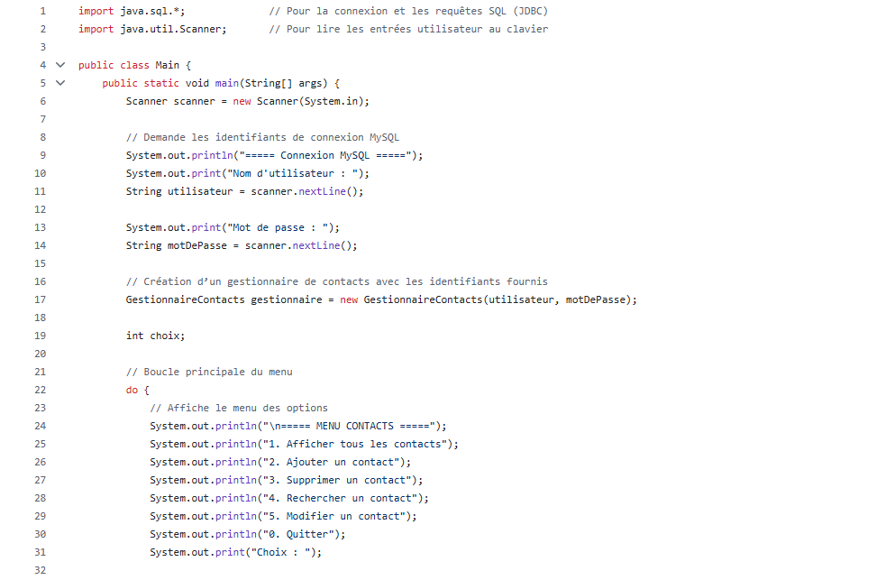 Ce projet consiste en la création d'une application de gestion de répertoire développée en Java avec une persistance de données MySQL. L'objectif était de concevoir un système capable de manipuler des données en temps réel via JDBC, tout en garantissant une structure orientée objet robuste et sécurisée.